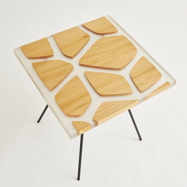 欅と樹脂を融合させたオーダーメイドのサイドテーブル