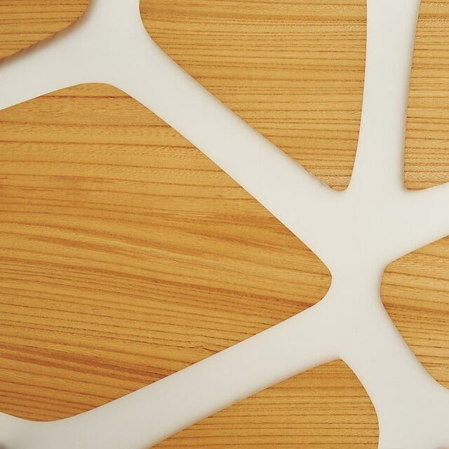 レジンの半透明な柔らかい素材感と欅の木目の温かみが、何とも言えない優しくかつ可愛らしい天板となっております。